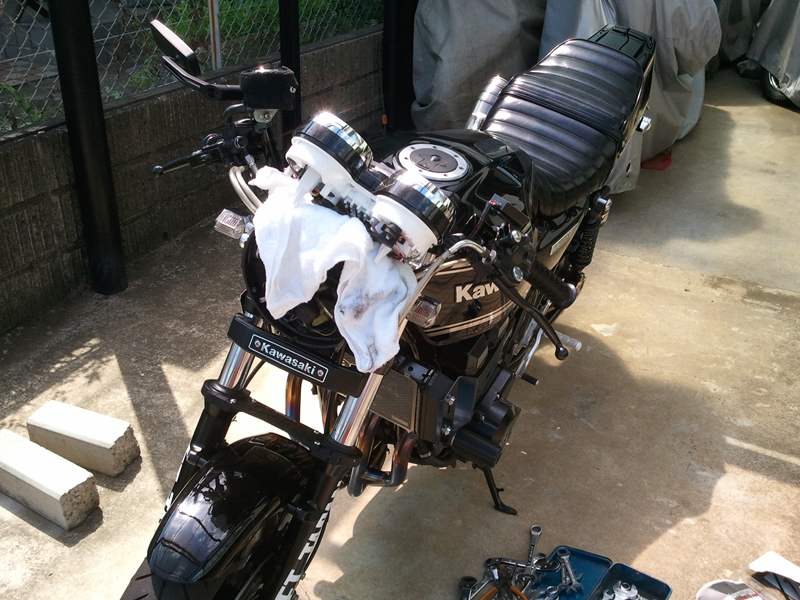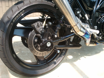 ゼファー750のスイングアーム装備後、ホイールをZXRのを流用。