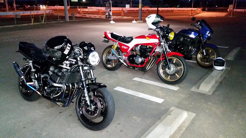 そして一人だけ遠く寂しいところにおかれていたCB750Fも合流してご飯を食べに・・・